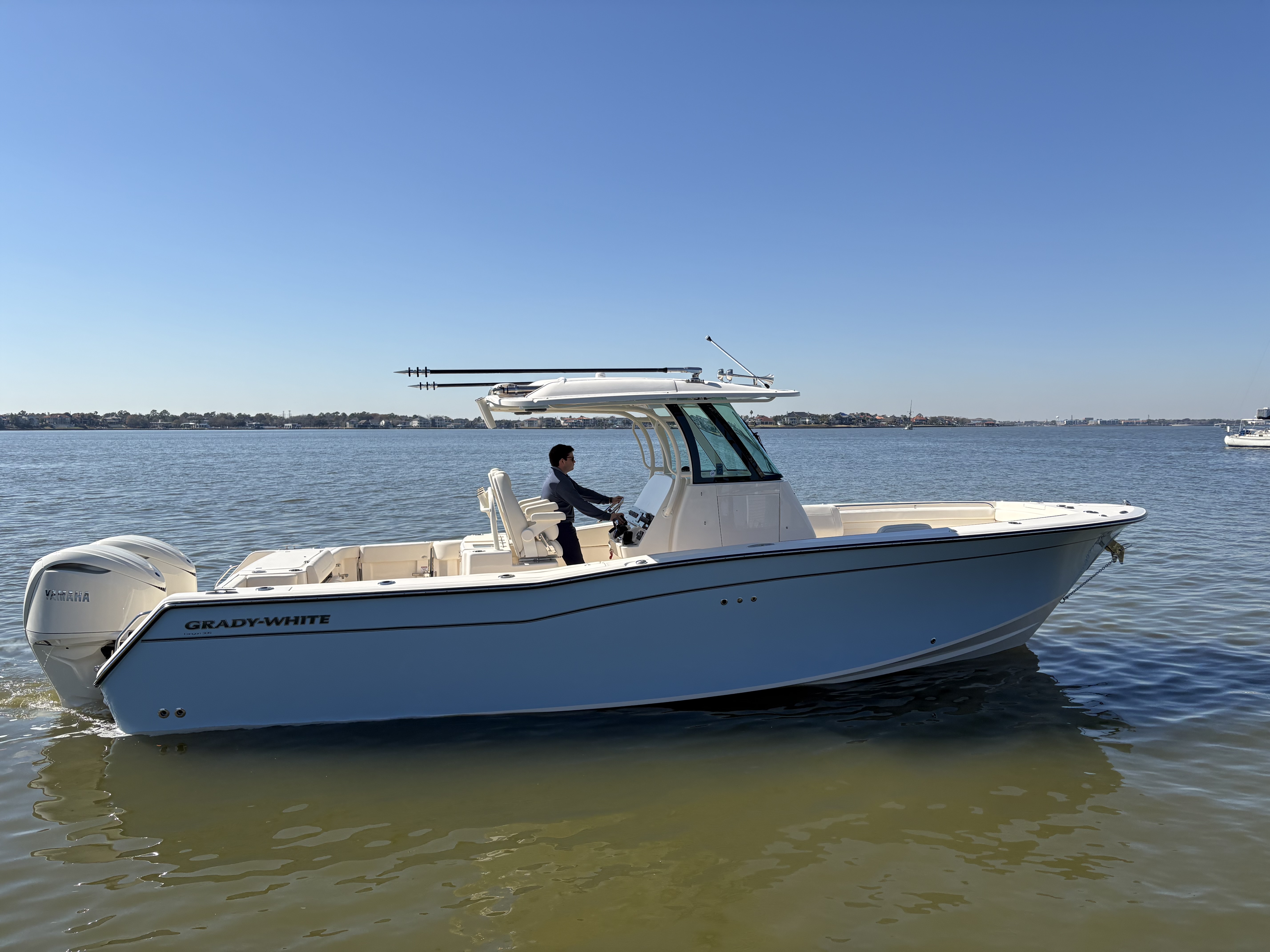 Dry stack stored 2023 Grady White 326 Canyon with less than 100 hours on twin Yamaha F300's including Helm Master joystick control. Yamaha warranty through December of 2026. Garmin Elelectronics package with Dual 16" Displays, Radar, CHIRP Transducer...